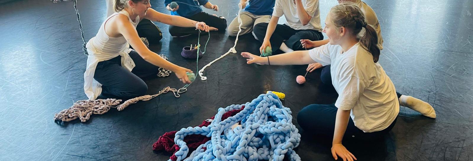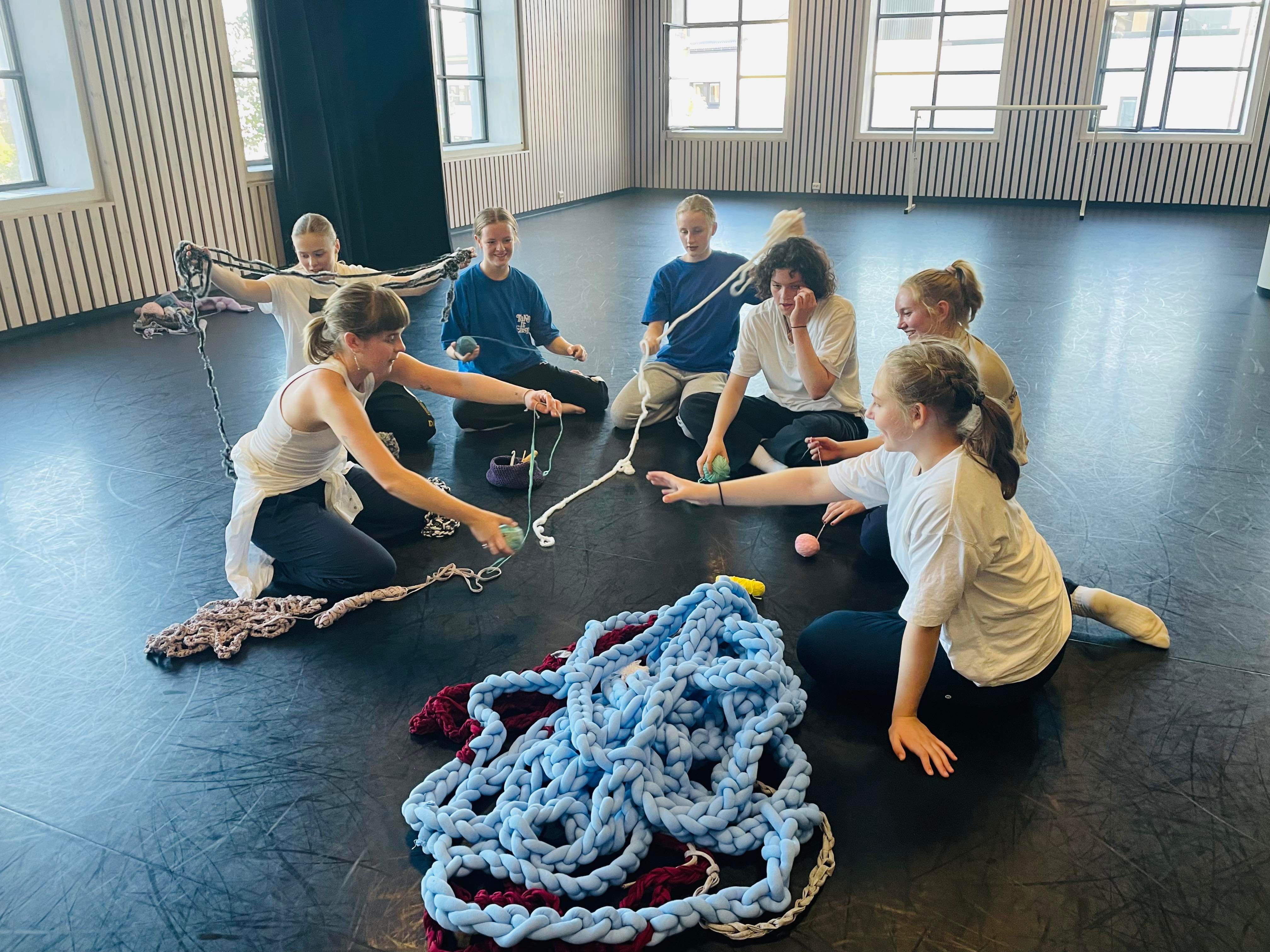 Workshoppens struktur vil være delt i fire dele, hvor hver dag starter med en opvarmning, og tryghedsskabende øvelser. I den første del af forløbet skal vi fokusere på at lave garnnøgler ved at lave sammenhængende tråder af restegarn og genbrugstekstiler. Videre skal vi udforske hækleteknikken og lære at lave løkker, knuder og kæder. Målet for dette er at de unge skal blive trygge i de gentagne bevægelser, samt udvikle egne metoder gennem improvisation. For den tredje del skal vi prøve at samskabe og gå fra individuel udførelse til kollektiv praksis. I grupper skal de sammen udforske hvordan man kan kreere forskellige formationer og strukturer, og bevæge sig til det. Til sidst vil de lære at rive værkerne fra hinanden, samtidig som man varetag materialerne. Det vil også give dem tid til at reflektere hvad de har gjort i dag, og undre over hvad man ønsker at prøve ud næste gang.